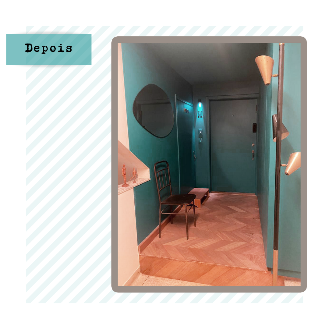 A grande atração foi a pintura setorizada em um tom de verde petróleo, envolvendo paredes laterais e teto, trazendo uma ilusão de caixa.